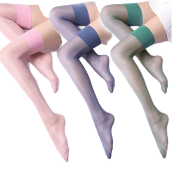 Directo de fábrica, medias eróticas sexis 12D hasta el muslo para mujer, transpirables, puntera transparente, coloridas, Rosesakura, tejido de punto sólido fino